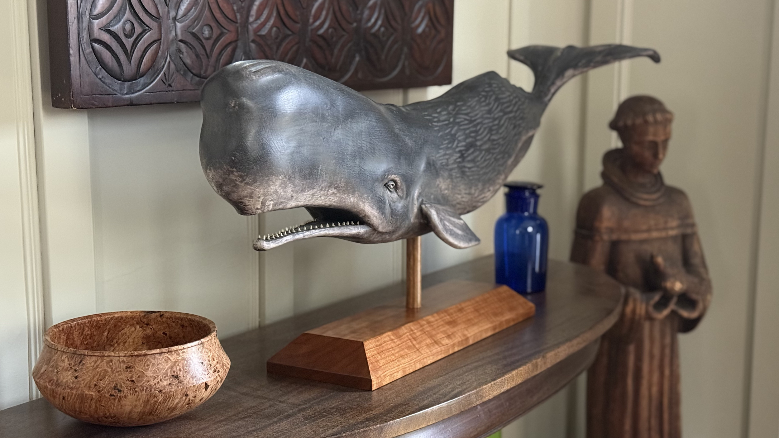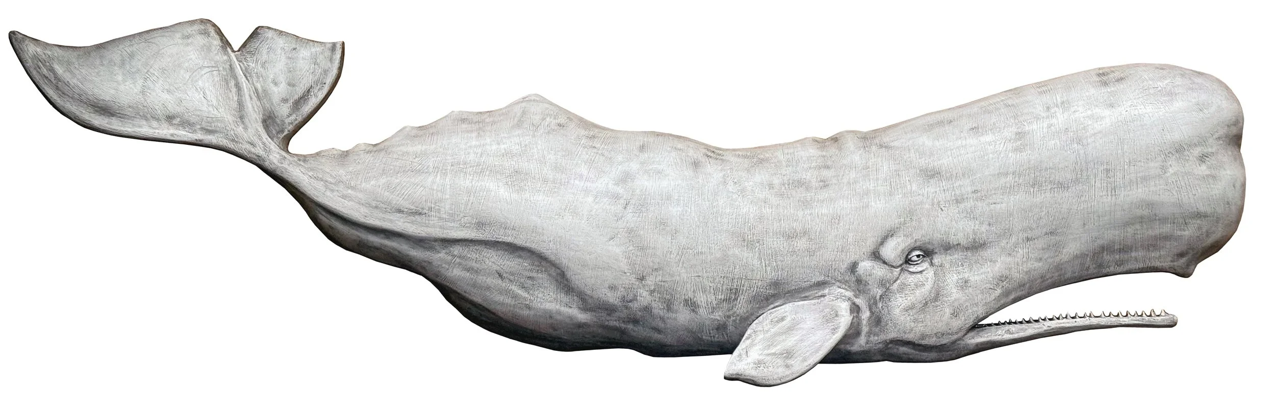 At six feet long and crafted with period detail, this wall hanging involved 1800s research and a touch of time-travel imagination. Our goal—using a folklore-inspired whale shape, early signwriter’s lettering styles, and a weathered finish—was to create something convincing and ultra-authentic to satisfy the museum curators who asked us to collaborate on an exhibit. We envisioned this sign hanging on the front of a Nantucket or New Bedford general store when the household need for whale oil was as vital as milk and bread. For centuries, sperm whale blubber oil and the whale’s premium spermaceti lit homes and cities around the world. It lubricated the Industrial Revolution until the 1859 discovery of Pennsylvania crude oil, which abruptly ended the whale oil industry and its centuries-old way of life for whaling communities worldwide.